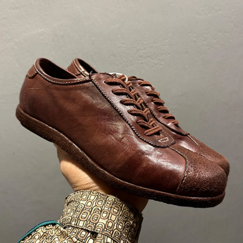 Freshova™ FRS20111 Genuine Leather Patchwork Casual Shoes – Men’s Breathable Lace-Up