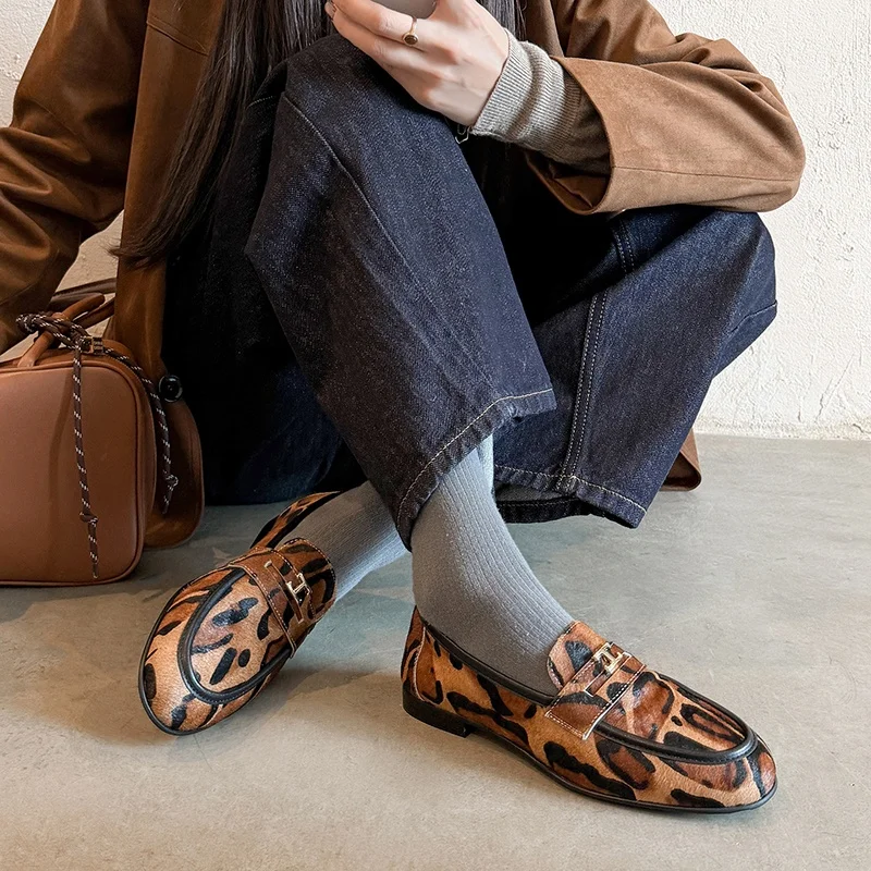 Freshova™ women loafers, women horsehair leather loafers, office lady flats women, women round toe casual loafers, women pigskin insole flats, women elegant office shoes, women spring autumn loafers, Freshova™ women flats